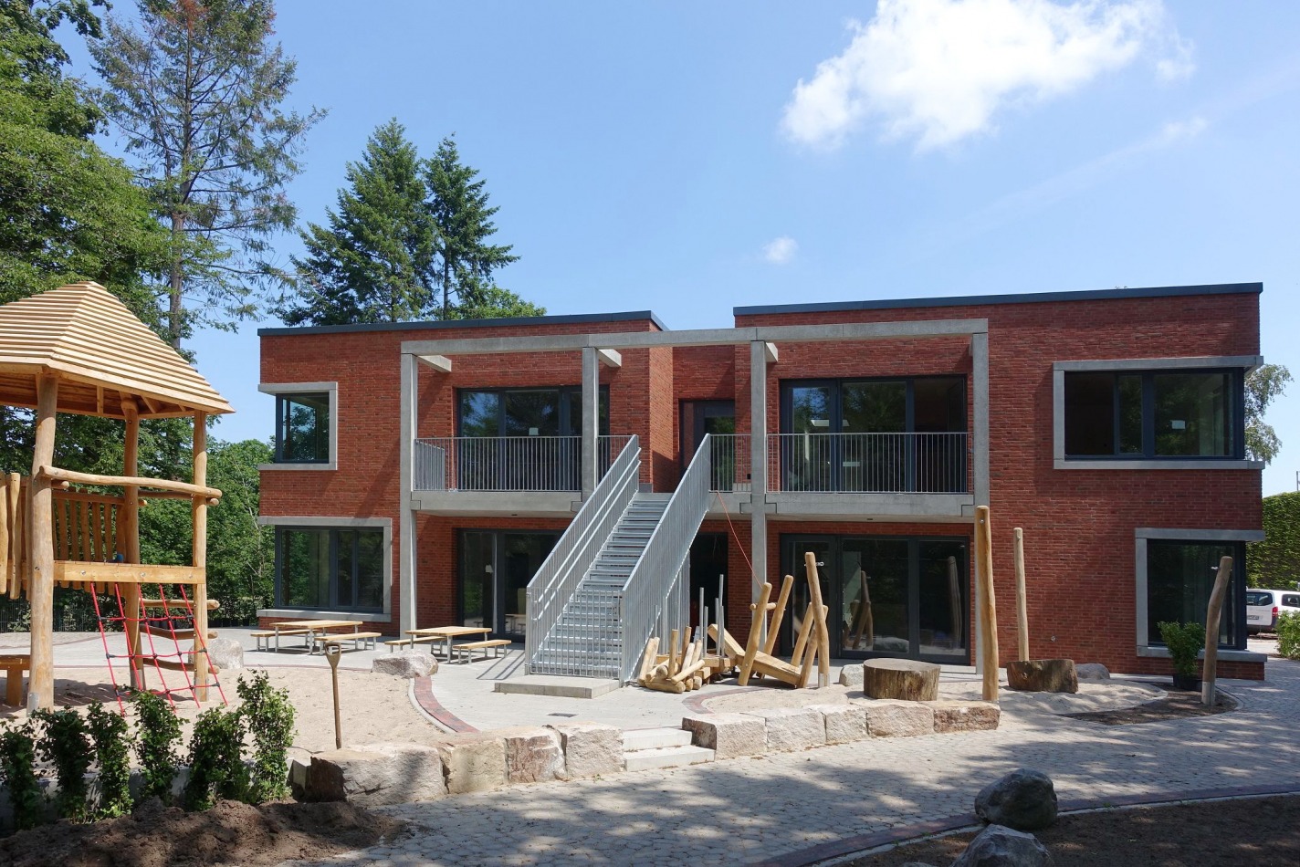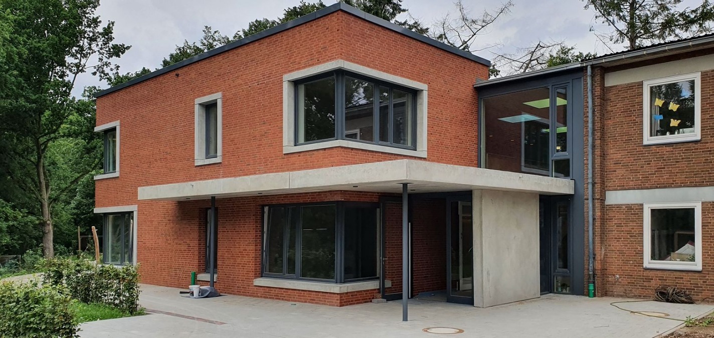 Die bestehende Kita in Bremen wurde durch einen Neubau erweitert. Es folgt die Sanierung des Altbaus.